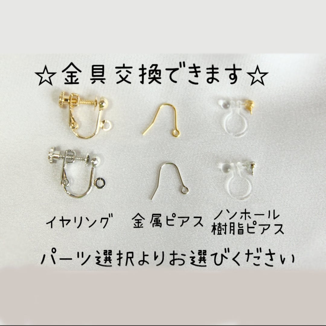 イヤリング、ピアスフック、ノンホール樹脂ピアスへの変更も可能となっております。